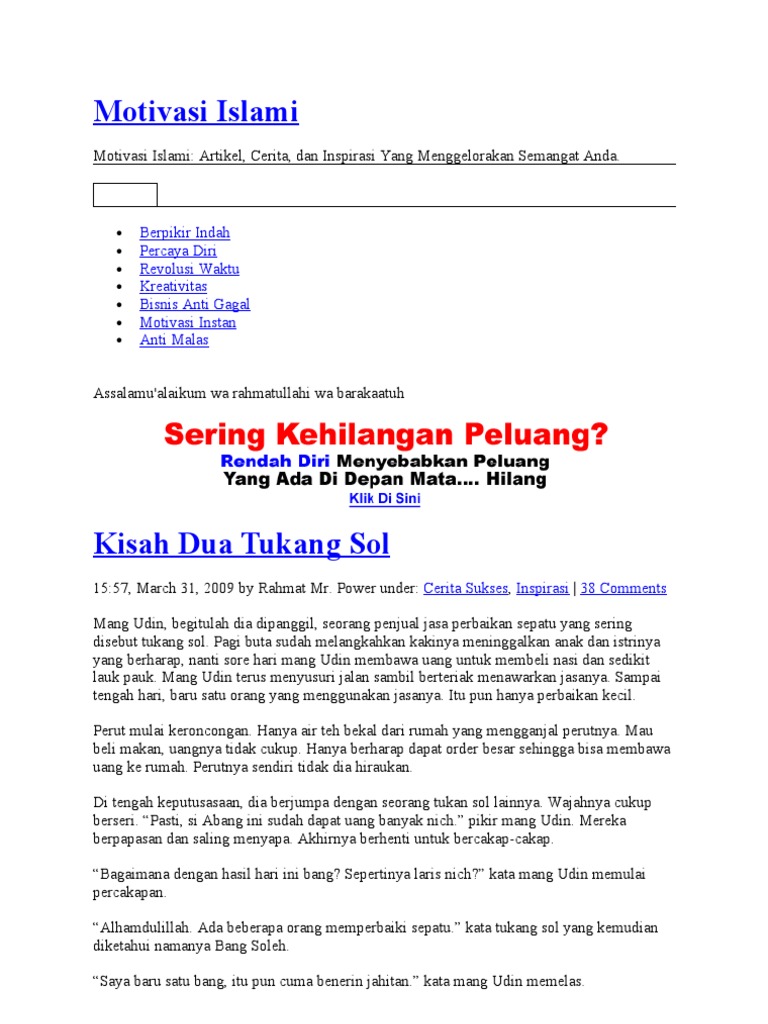 Kumpulan Motivasi Dan Inspirasi Islam Kumpulan Cerita Inspirasi